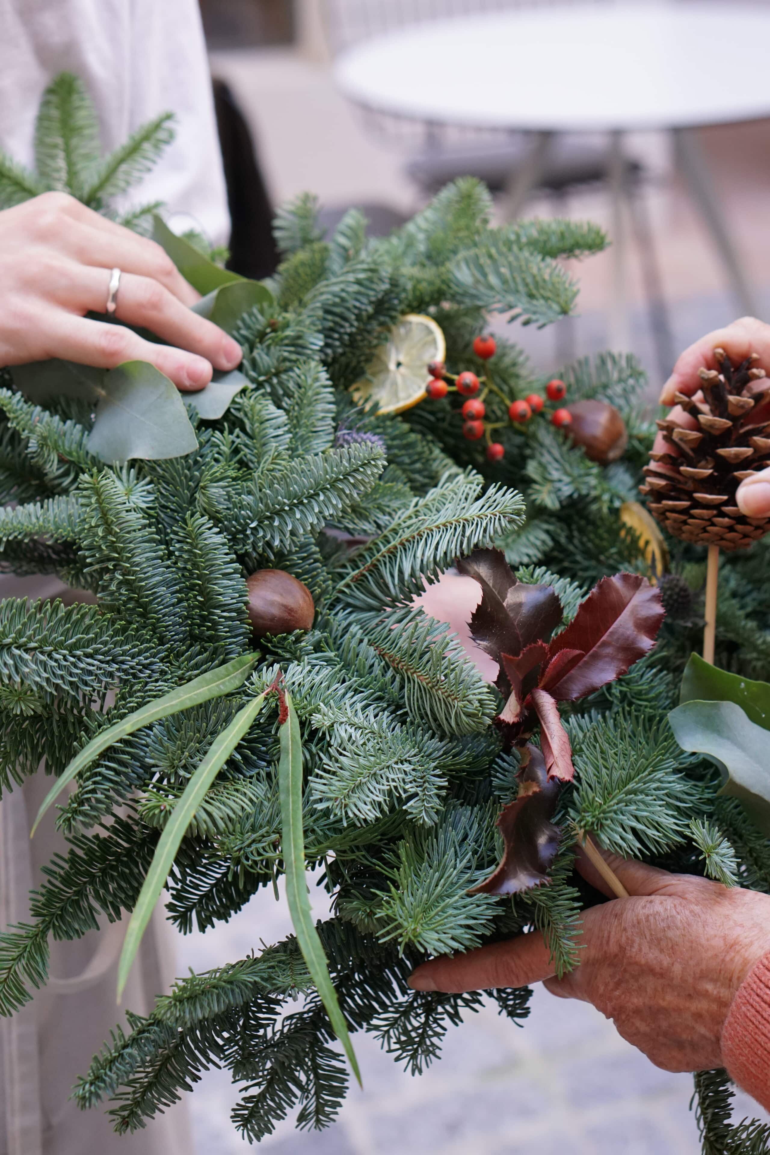 This festive season, Christmas blossoms at Plácido y Grata with one of our most eagerly awaited workshops: the Christmas wreath workshop with Orangerie, which will take place on Saturday the 6th of December at 10am in our courtyard. It’s a collaboration we love to repeat year after year, because we share the same sensitivity for nature and simple beauty. Together with the Orangeria team, you will learn how to create your own Christmas wreath with fresh branches, dried flowers and an Andalusian touch.